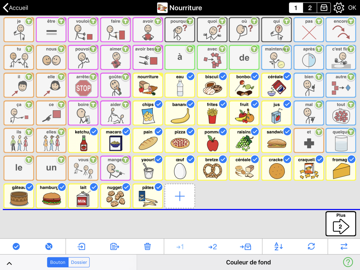, plusieurs options permettent de réorganiser les boutons. Vous pouvez soit faire un glisser-déposer pour modifier l’ordre des boutons ou utiliser les outils de la barre d’outils du Mode Édition pour les déplacer. (Notez que les boutons sur lesquels est affichée une étoile verte ou un « T », dans le coin supérieur droit, font partie du modèle du dossier. Ces boutons ne peuvent pas être déplacés dans le Mode Édition standard.)