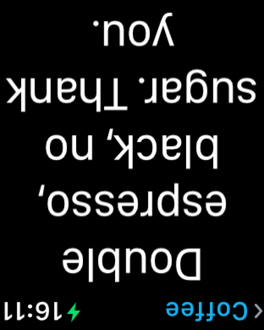 To choose a phrase in Proloquo4Text for Apple Watch, tap it. The full phrase will appear on the Watch face. Tap the Watch face again to speak the text out loud. Tilting your wrist towards the person you are talking to will flip your message so it is easier to read.